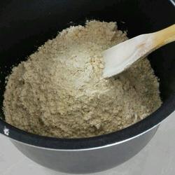 1.Put whole wheat flour, glutinous rice flour and sesame seeds into the pot and turn to low heat Start stir-frying, and set the electric ceramic stove I use to 400.