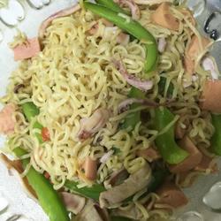 How to make fried noodles with chili and ham