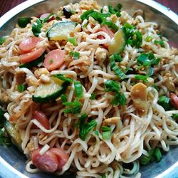 1.Soak the noodles in boiling water, then drain them into cold water.