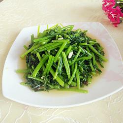 6.Add minced garlic and salt and continue to stir-fry until the chrysanthemum chrysanthemum is cut off.Remove from the pan.