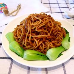 9. Turn to low heat and add cooking wine, soy sauce, salt, sugar and cooked noodles Stir well with shredded pork and serve.