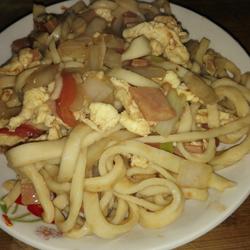 Flour ( 100g ) | Eggs, onions, ham and tomatoes ( appropriate amount ) |
