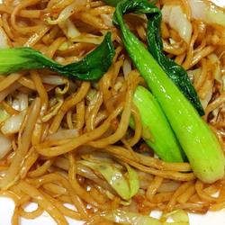 5. Heat the oil, add all the vegetables, add salt and stir-fry for a while.Add noodles, add some soy sauce and stir-fry evenly.Then add some minced garlic before taking it out of the pan.Just load it into a plate.There are two pictures missing in the middle...