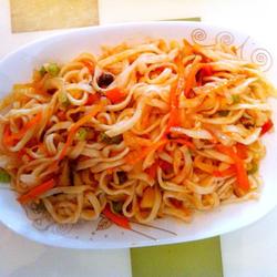 5. Heat the oil and stir-fry the prepared ingredients, and finally add the noodles and stir-fry.