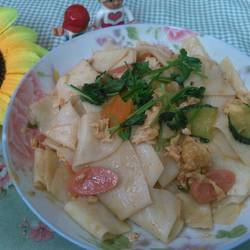 10.Pour in the noodles and stir-fry , take it out of the pot and put it on a plate