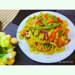 12. Add noodles and stir-fry for one minute.The flavor is very fresh.
