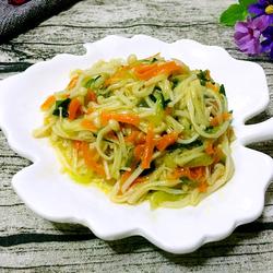 3. Pour an appropriate amount of oil into the pot and heat it up, then add the shredded carrots and stir-fry until Discoloration and softening