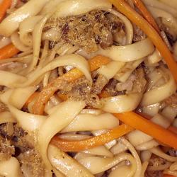 How to make stir-fried noodles with carrot and meat floss