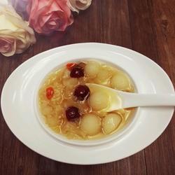 7. After cooking, add a small amount of rock sugar.The white fungus has cooked out gelatin and the soup is thick.Full of collagen.