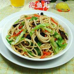 1.Ingredients: Shredded carrots, black fungus (soaked, washed and shredded), cabbage (washed and shredded), noodles (blanched and cooled)