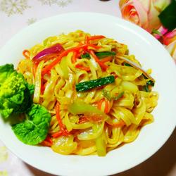 10.Pour the mixed noodles into the dish and stir-fry evenly.