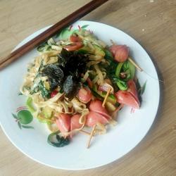 Noodles ( a small handful ) | Green vegetables (a handful) |