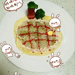 9.Place the egg cakes on a flat plate, and put the fried noodles on top.Click to decorate.