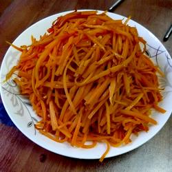 3. Shred the carrots.Stir-fry for two minutes, add salt and continue to stir-fry