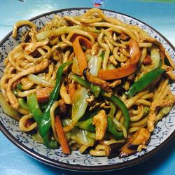 11.Stir fry until the green pepper and noodles are evenly mixed