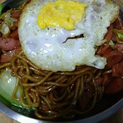 9.Put the fried eggs on top, a plate, soy sauce fried noodles, and it’s done Alright