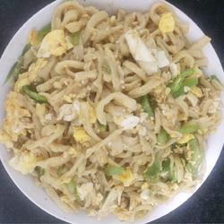 How to make egg and chili fried noodles (homemade knife-cut noodles^)