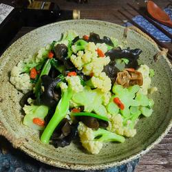 Choose thick and slightly black black fungus for a better taste.Adding white vinegar is more helpful for softening blood vessels.It can also remove the fishy smell of cauliflower and increase The tenderness of the cauliflower.
