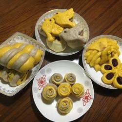 2.Put pumpkin and purple sweet potato into bowls, press them into puree, then put in flour and knead the yeast until smooth, then place it in a warm place for fermentation.The dough will rise Bee network status.