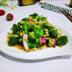 5. Pour in light soy sauce, mature vinegar and olive oil, mix well and sprinkle with nuts.