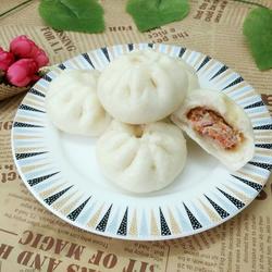 10. Then put the meat filling in the middle, fold one pleat with your right hand, then fold the second pleat, glue the two pleats together at the top, and then fold them down one by one.Fold the last pleat and stick it to the beginning., in the shape of a bowl, press down slightly with your thumb in the middle to gently reshape the buns.