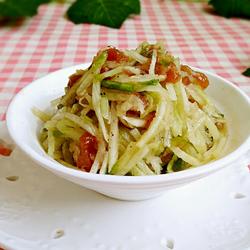 1. Wash the green radish and cut it into pieces.Use a grater to grate it into shreds and set aside.Now use it to kill the water