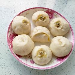 2. Divide the risen dough into small portions, knead evenly and roll into a skin., wrapped into buns.