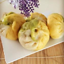 2. Squeeze the carrots and spinach into juice, separate the flour into three portions, add yeast powder respectively, and mix with spinach juice, carrot juice, and water to form dough of three different colors.Place it in a container and cover it with a lid to ferment until doubled in size.