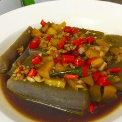4. During the process of cooking konjac, you can mince the garlic and cut the millet and pepper into rings.(I also got some yellow peppers)