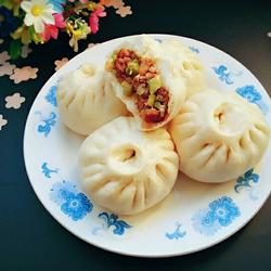 9.Put in the fillings, hold the bun with your left hand, lift the pleats with the thumb and index finger of your right hand and pinch the seam.
