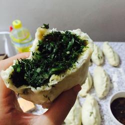 6. Hold the skin with one hand, place the vegetables with the other, fold in half and pinch the edges