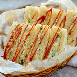 9. Put the prepared sandwich on a plate, and you can also squeeze some ketchup on it to serve with Yogurt, milk or coffee is a great meal.