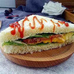 8.Use a bread knife to cut diagonally in half from the middle, and the bacon cheese sandwich is ready.