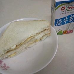 2. Fry an egg, put the egg on the meat floss, and put the other half of the bread