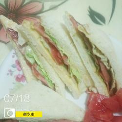 3. Spread sauce on the fried toast slices with the egg side, add vegetables and bacon , tomatoes, or other things can be put in, depending on everyone’s taste,