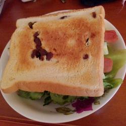 2. Spread tomato sauce on the bread, spread all ingredients, and stack a piece of bread also smeared with sauce