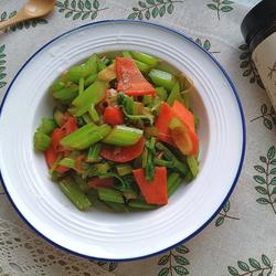 5.Put oil in the pot and fry the onion slices and carrot slices