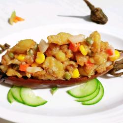 4.Wash the eggplant, carefully scoop out the eggplant flesh, and retain the shape