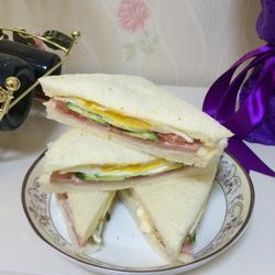 3. Place vegetables, ham and fried eggs on sliced bread, top with tomato sauce or salad Sauce, according to personal taste, then cover with a layer of sliced bread and press tightly.