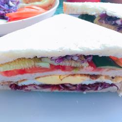 5.Then cut into triangular rows.The sandwich is done.