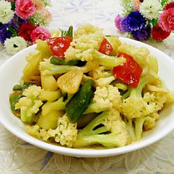 3. Prepare the ingredients in the picture.Wash the cauliflower, green pepper, red pepper and garlic.