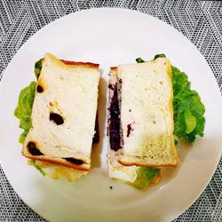 2 If the sandwich is not easy to cut, you can wrap it first Apply a layer of plastic wrap before cutting