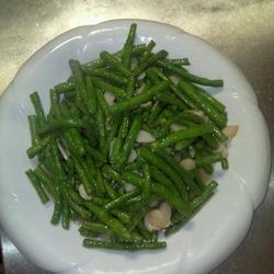 5. Re-heat the pot, add a little oil, add garlic slices, stir-fry garlic slices, add cowpeas, add a little water and stir saute!