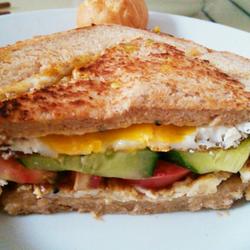 5.Follow the same procedure with the other piece of toast, then put the sliced cucumbers and tomatoes into the sandwich and you’re done! ! !