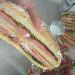 6.I wrapped the sandwich in plastic wrap and cut it diagonally from the middle.It is cold and convenient to eat., the sandwich will not fall apart