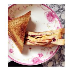 6.Brush two slices of bread with blueberry sauce, and the other slice with salad dressing
