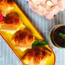8.Add the cheese slices, egg salad, and luncheon meat to the croissant in sequence