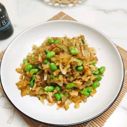 5.Add the edamame, stir-fry quickly, and it will be cooked in a while.If the edamame seeds are old, you can add a little boiling water to ensure that the edamame seeds are cooked