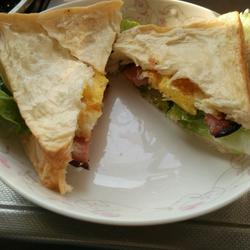 3.Put two slices of ham on it, and then Place another piece of lettuce on top