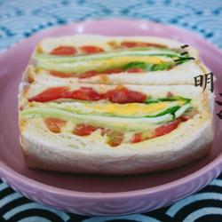 8.Then in sequence Add the other half of the ingredients in reverse order, and finally cover with toast slices